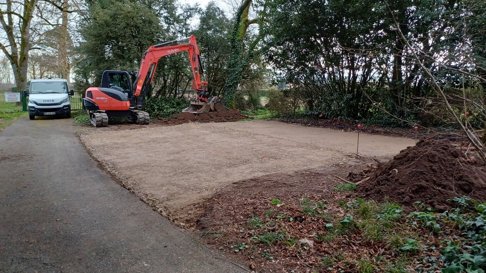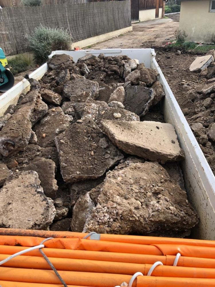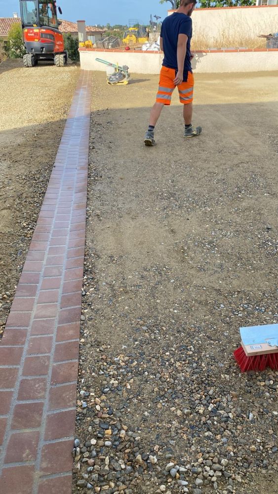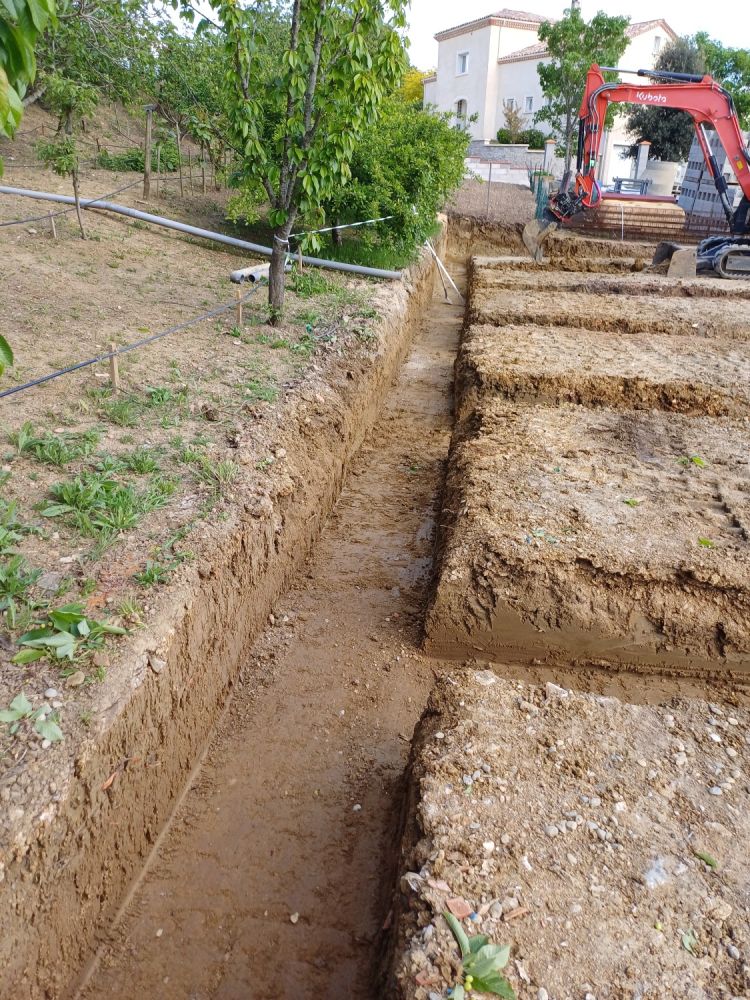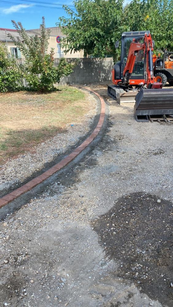 Nos photos et vidéos illustrent des réalisations concrètes : pose de micro-station, nivellement de terrain, goudronnage, location de bennes ou encore création de terrains de pétanque.