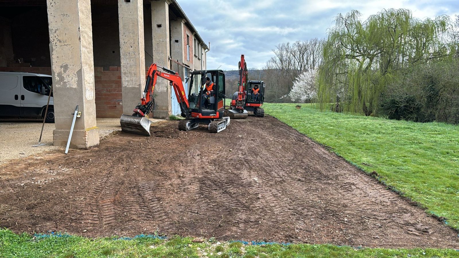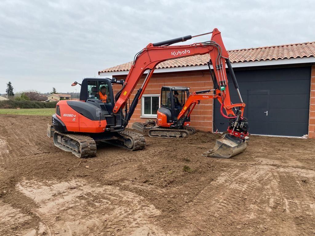 À travers cette galerie, plongez au cœur de l’activité de Gayraud TP, entreprise familiale basée à Villemur-sur-Tarn, spécialisée dans le terrassement, l’assainissement, les travaux de voirie (VRD), la démolition, et l’aménagement extérieur.