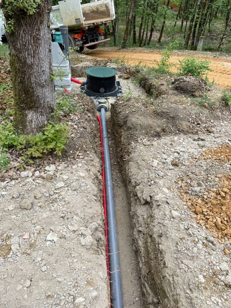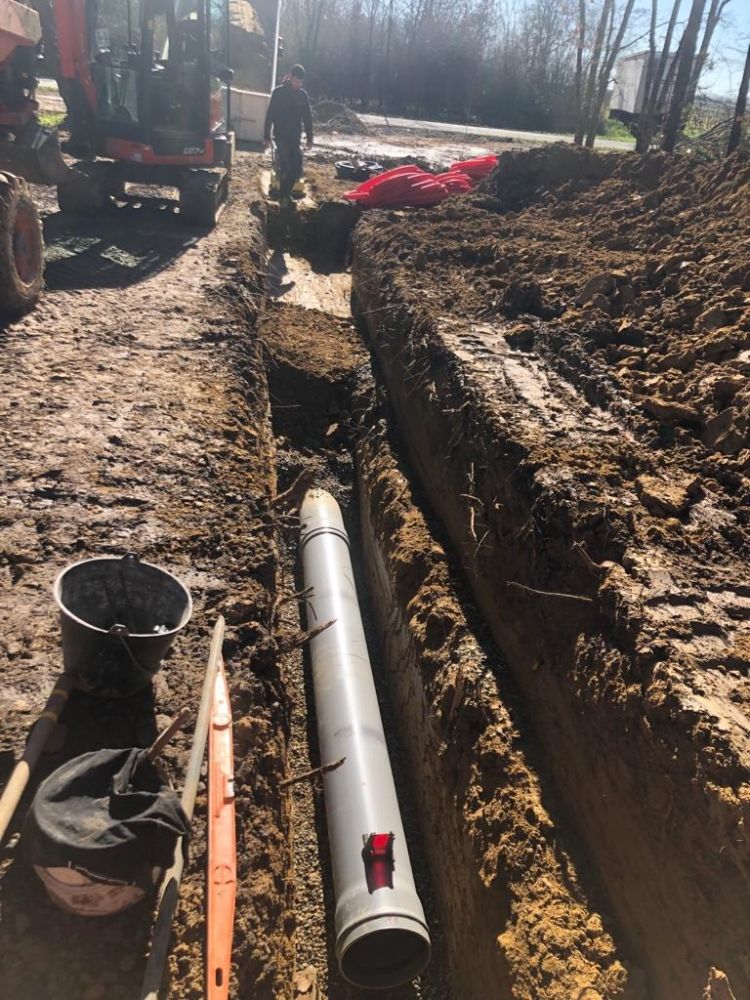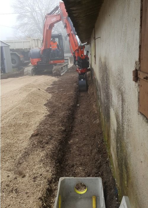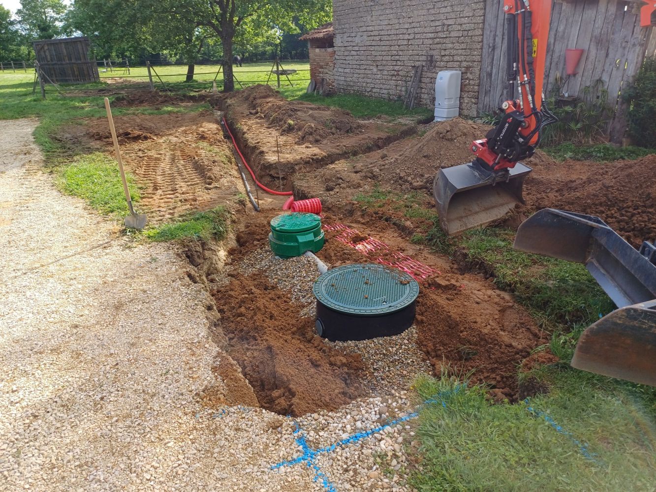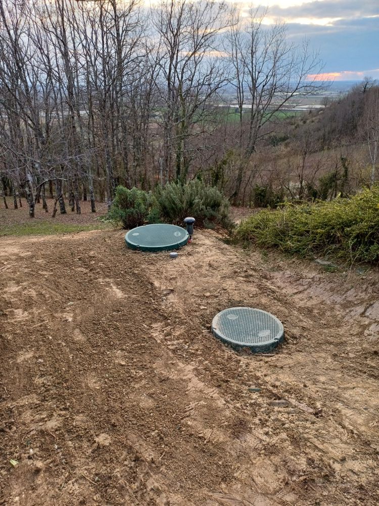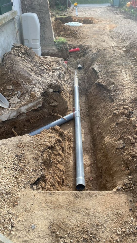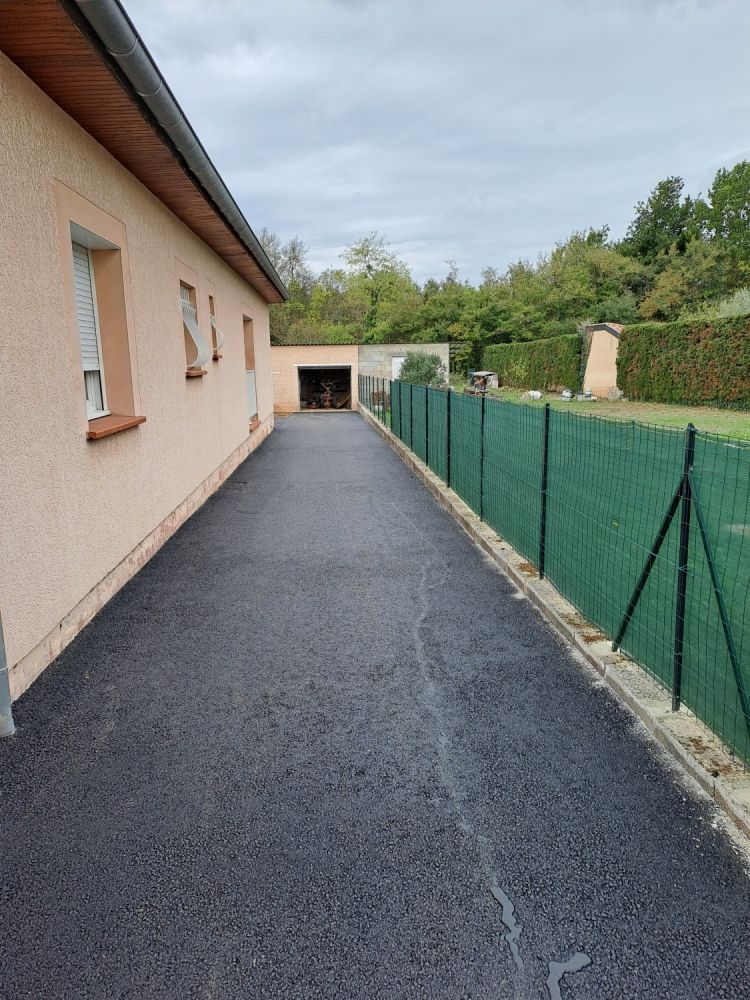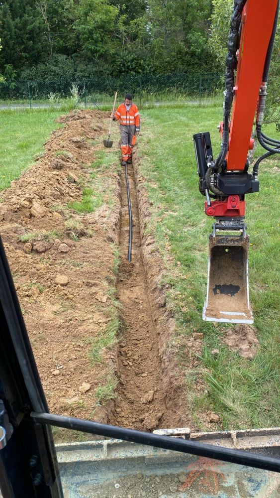 Nos photos et vidéos illustrent des réalisations concrètes : pose de micro-station, nivellement de terrain, goudronnage, location de bennes ou encore création de terrains de pétanque.