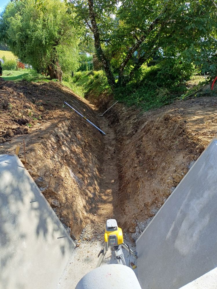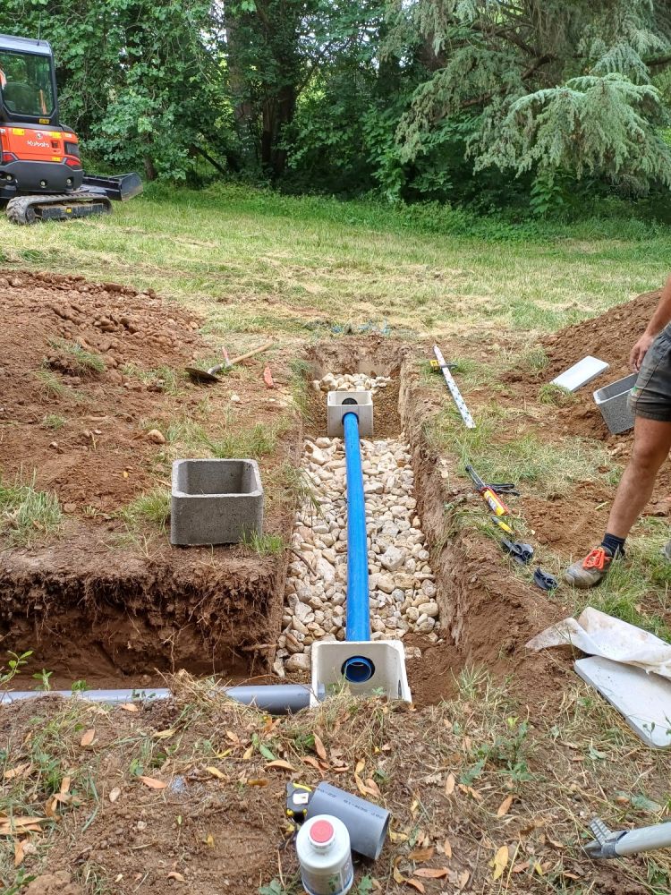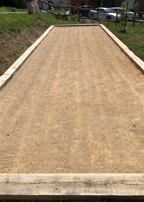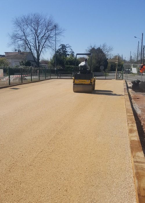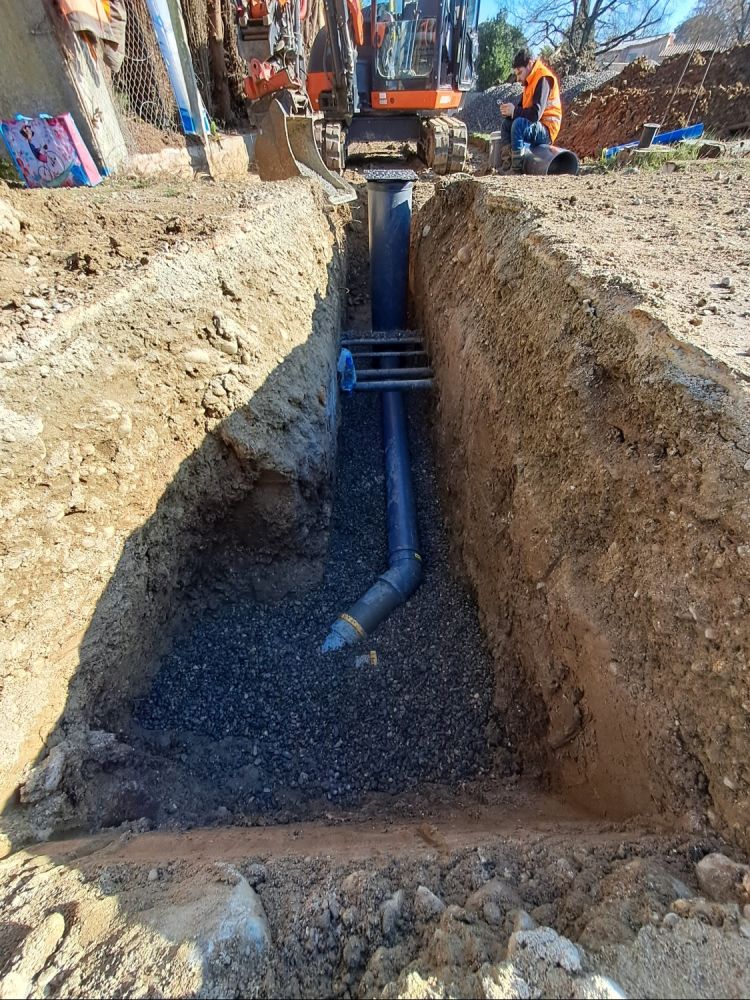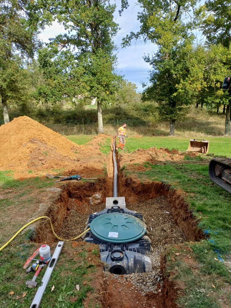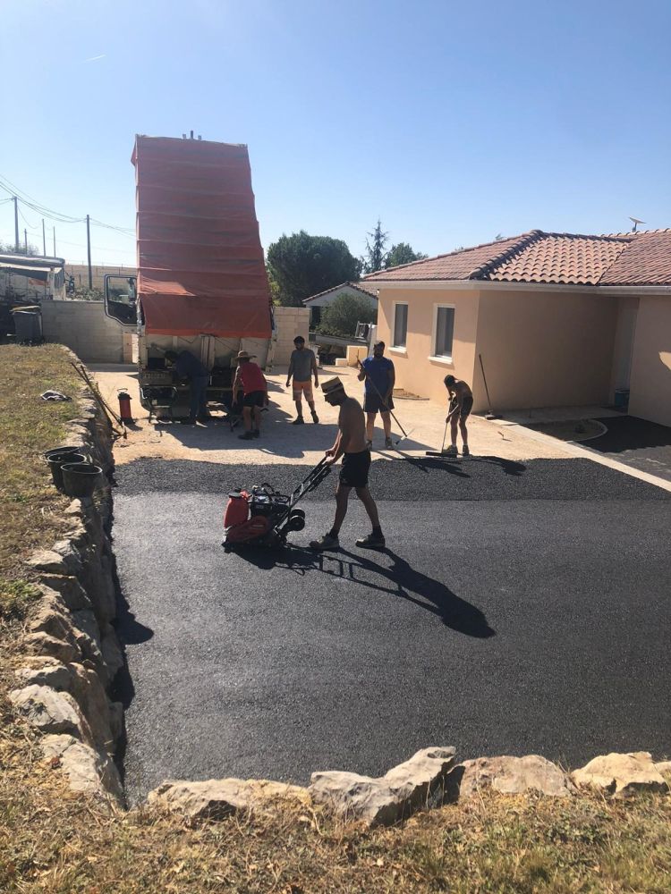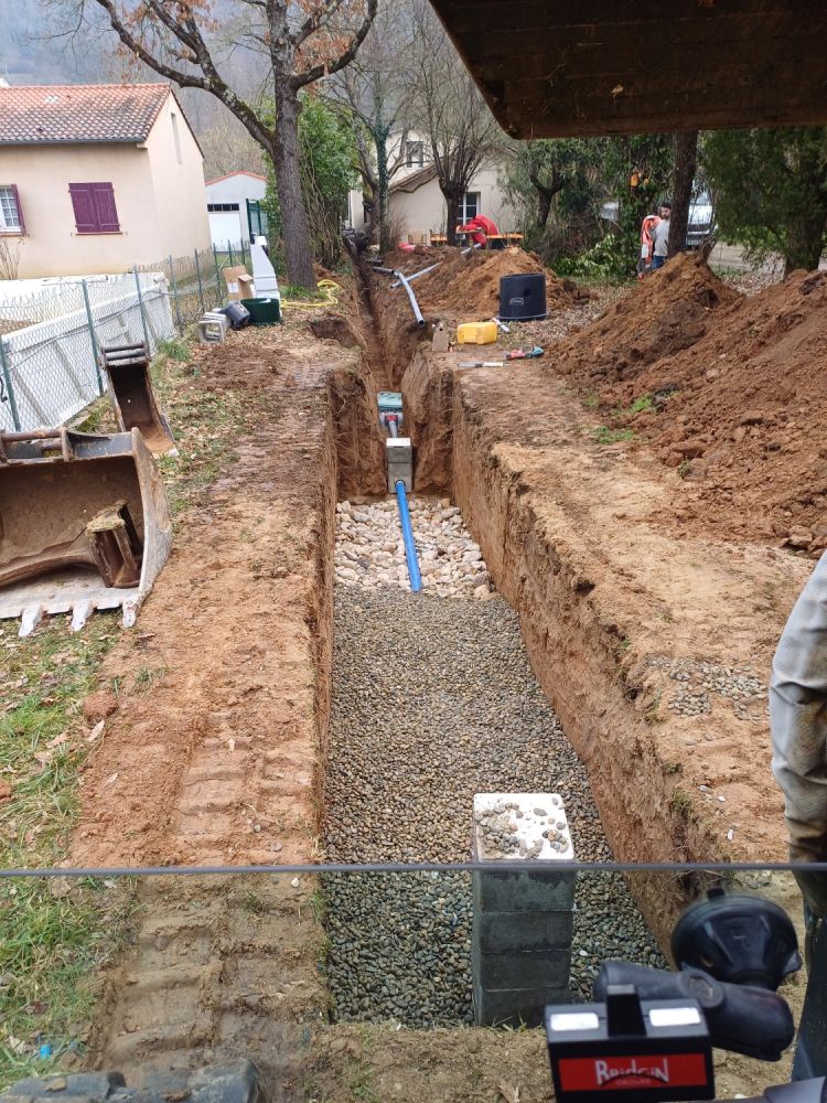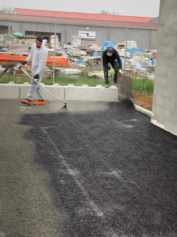 Nos photos et vidéos illustrent des réalisations concrètes : pose de micro-station, nivellement de terrain, goudronnage, location de bennes ou encore création de terrains de pétanque.