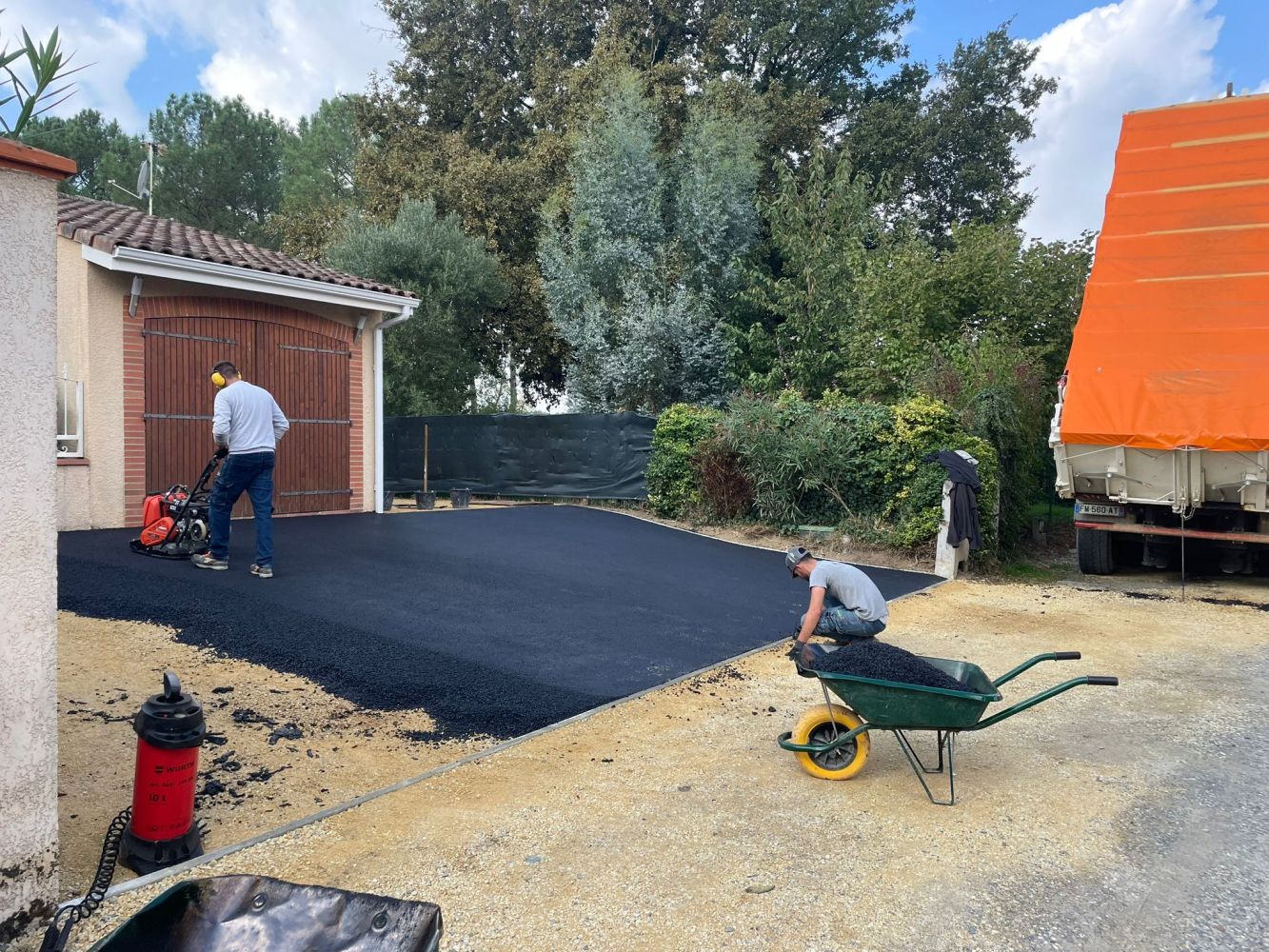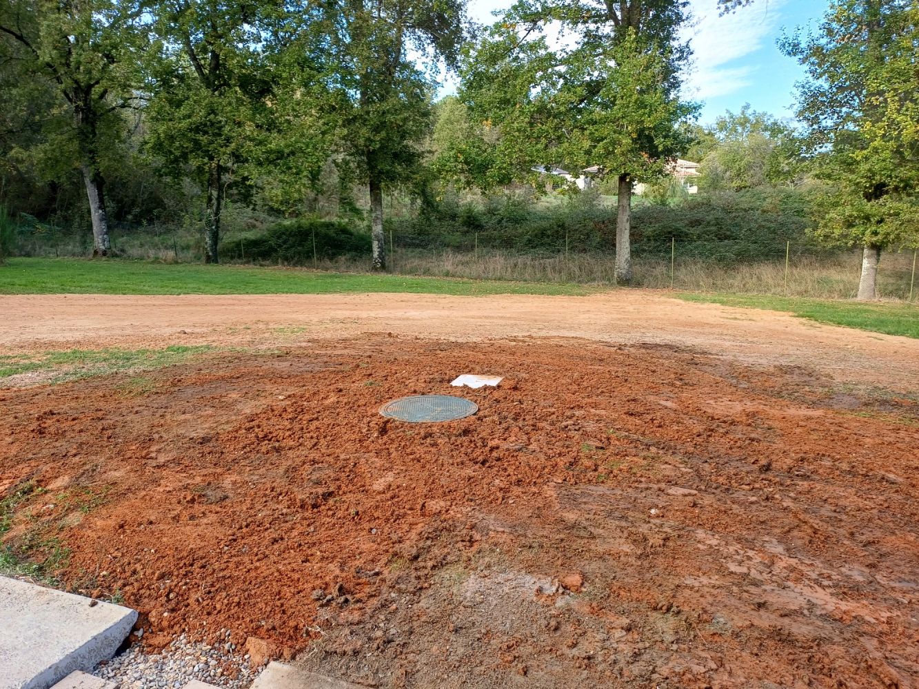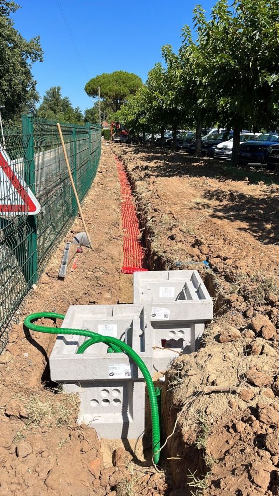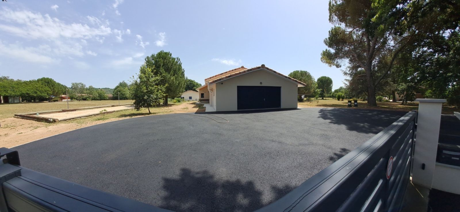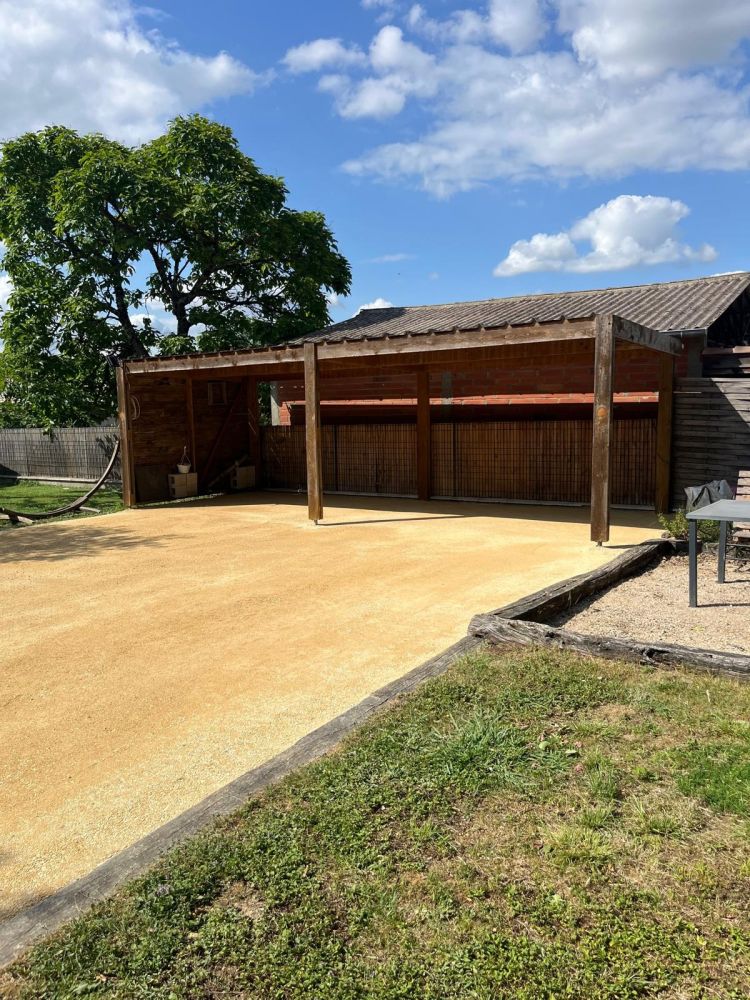 Nos photos et vidéos illustrent des réalisations concrètes : pose de micro-station, nivellement de terrain, goudronnage, location de bennes ou encore création de terrains de pétanque.
