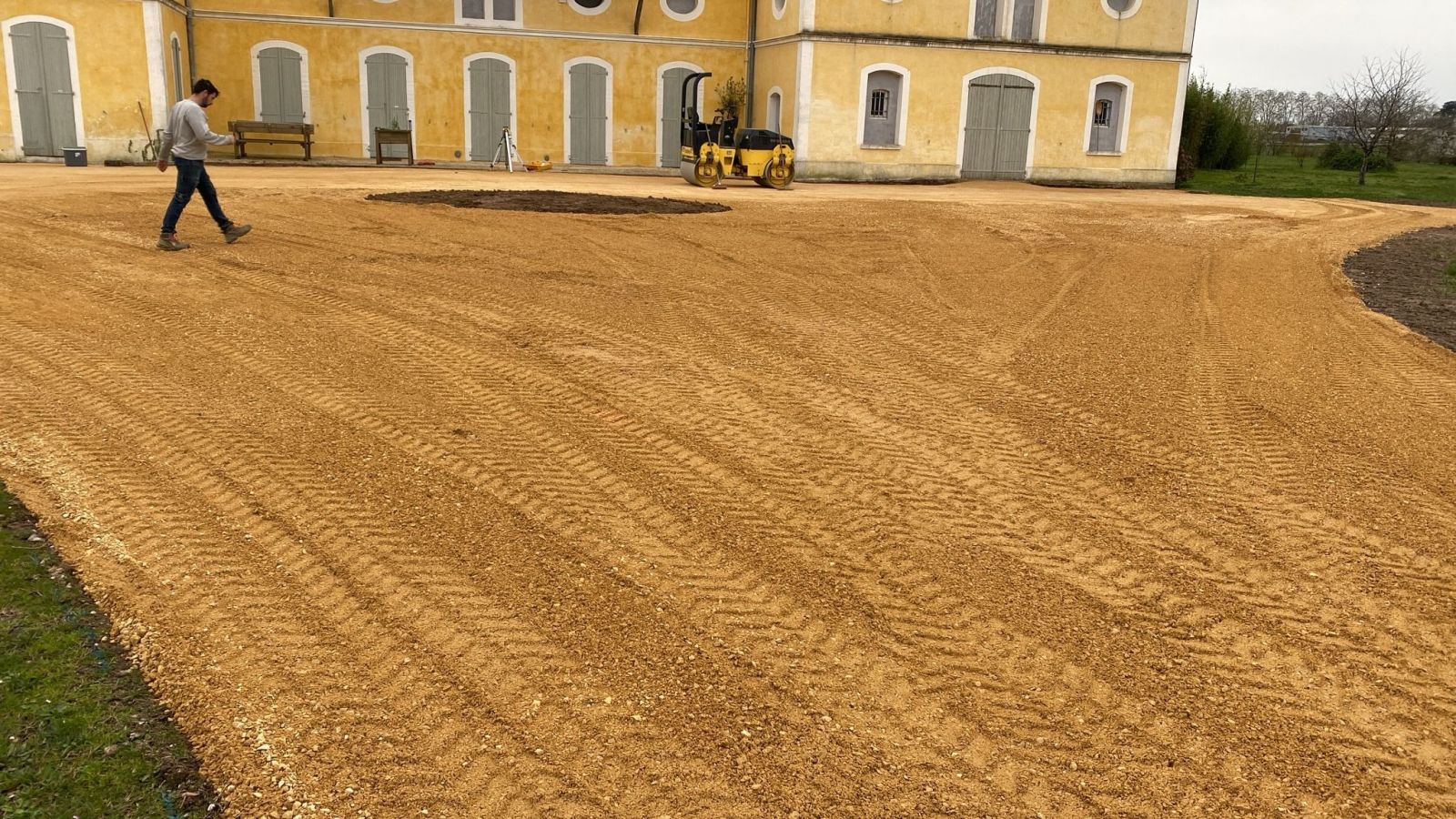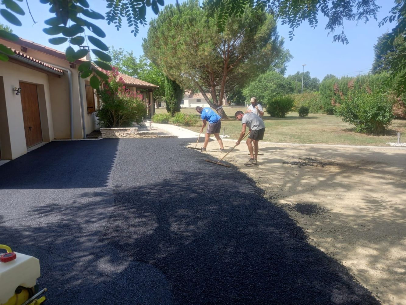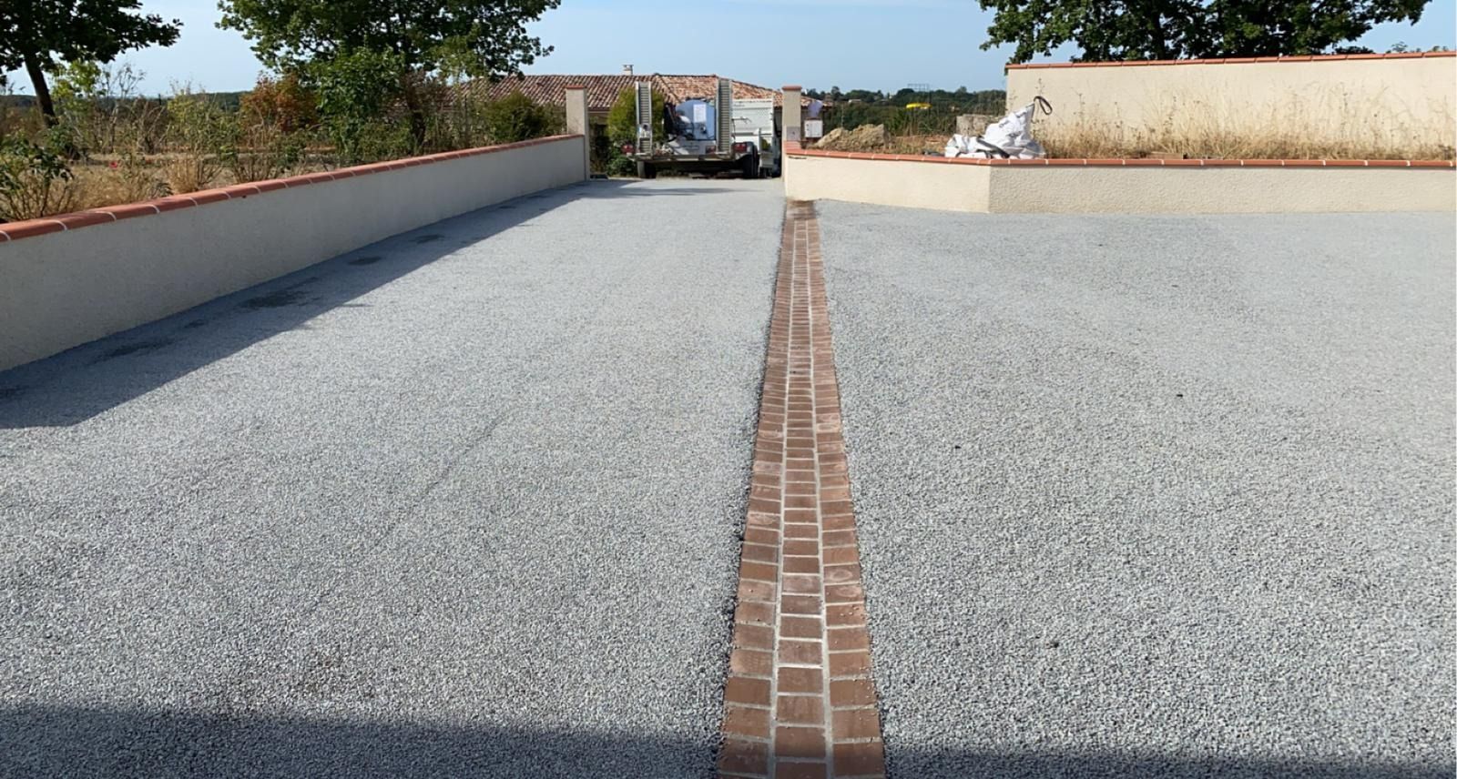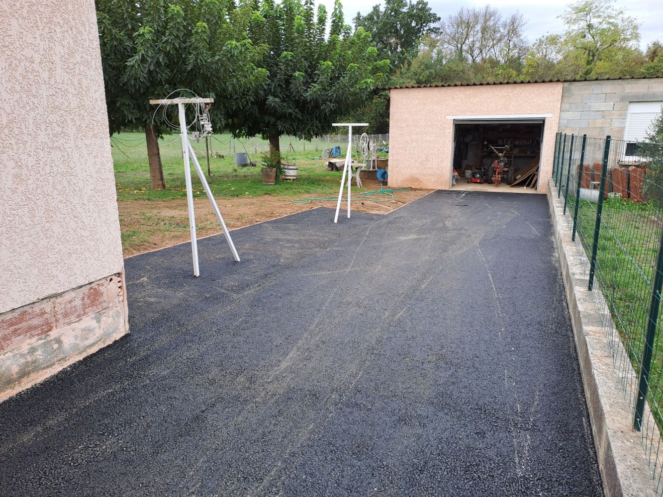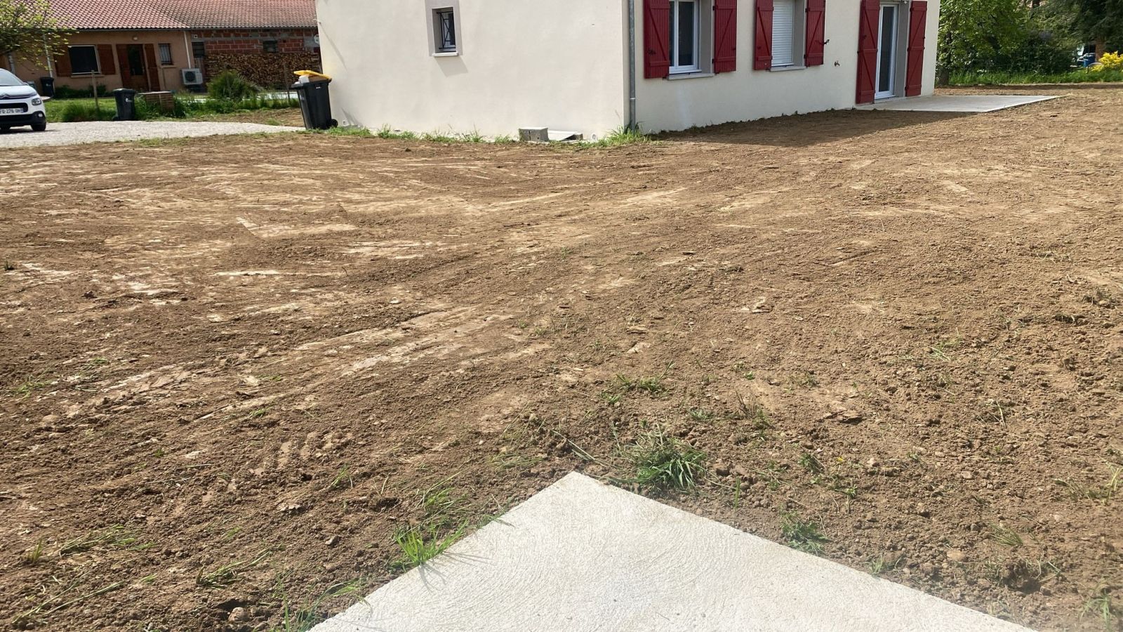 Nos photos et vidéos illustrent des réalisations concrètes : pose de micro-station, nivellement de terrain, goudronnage, location de bennes ou encore création de terrains de pétanque.