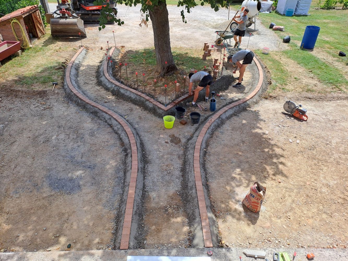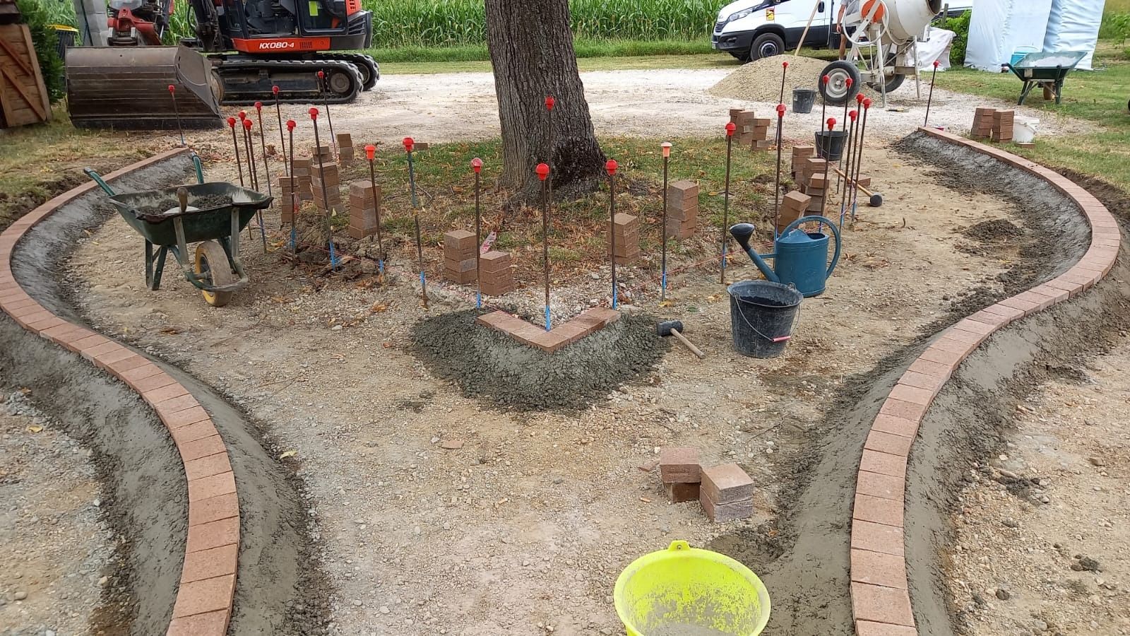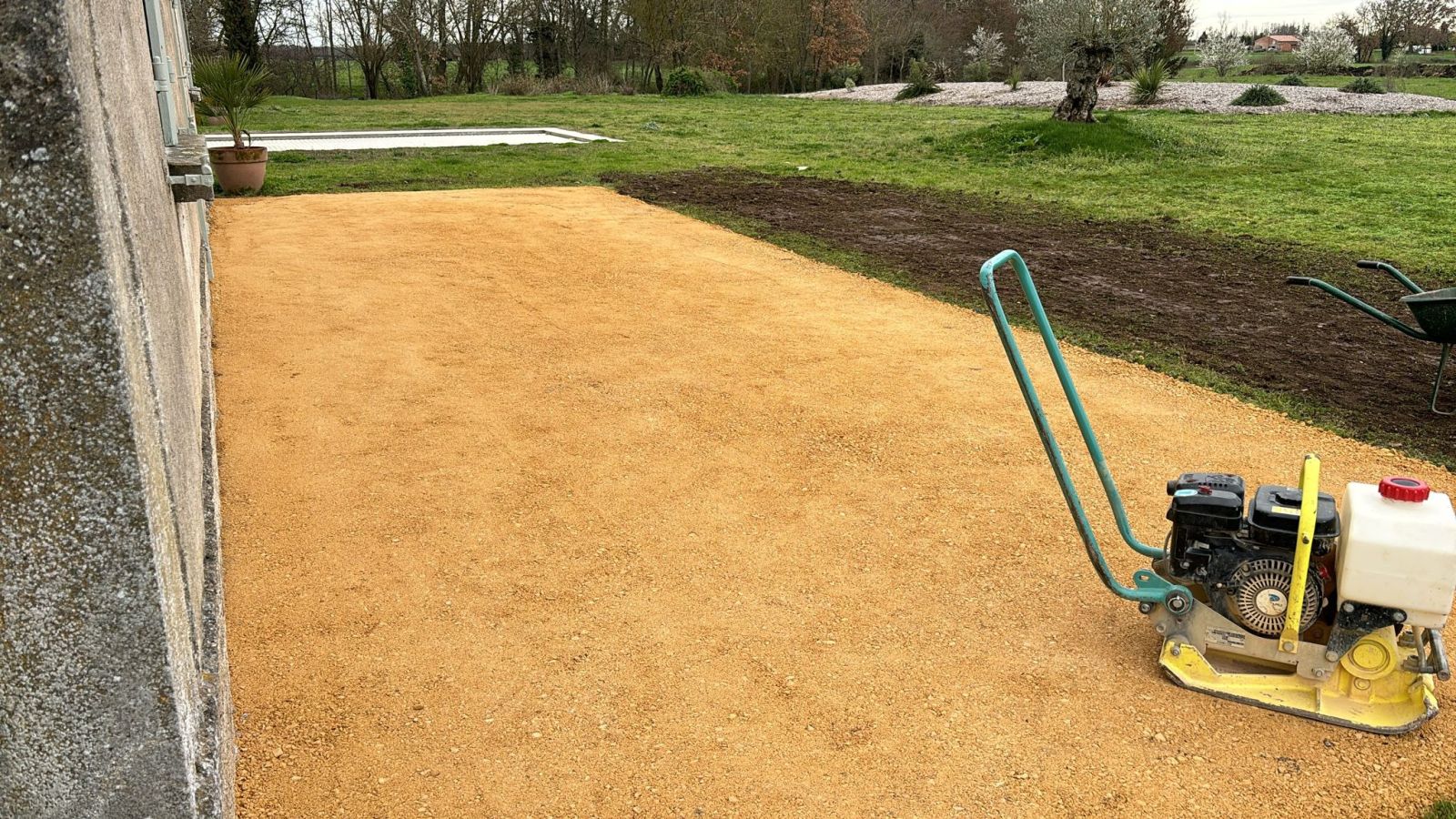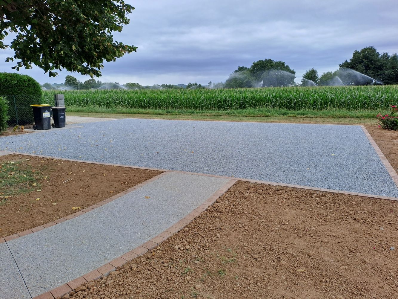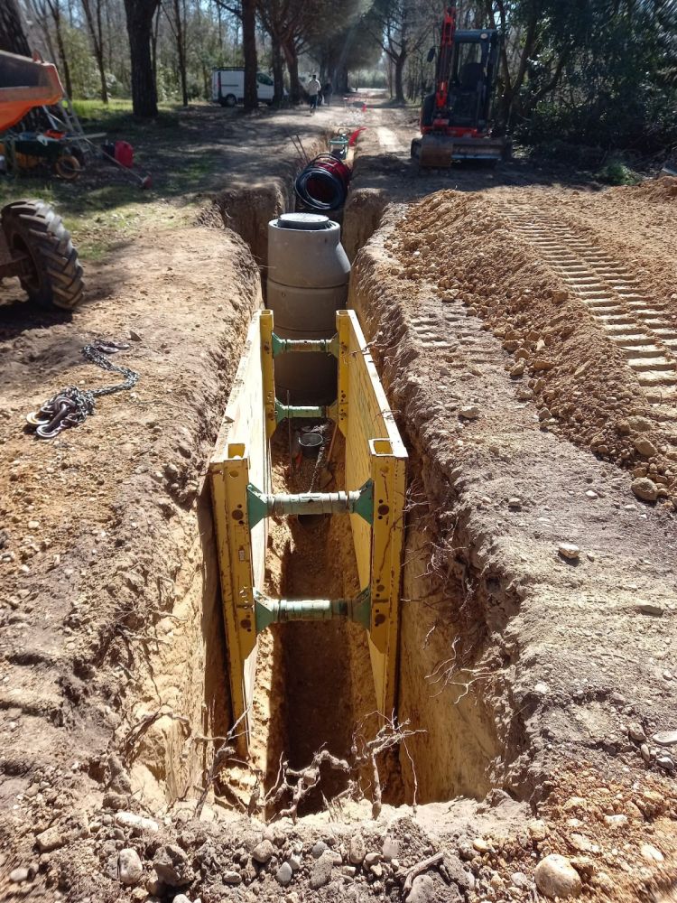 Nos photos et vidéos illustrent des réalisations concrètes : pose de micro-station, nivellement de terrain, goudronnage, location de bennes ou encore création de terrains de pétanque.
