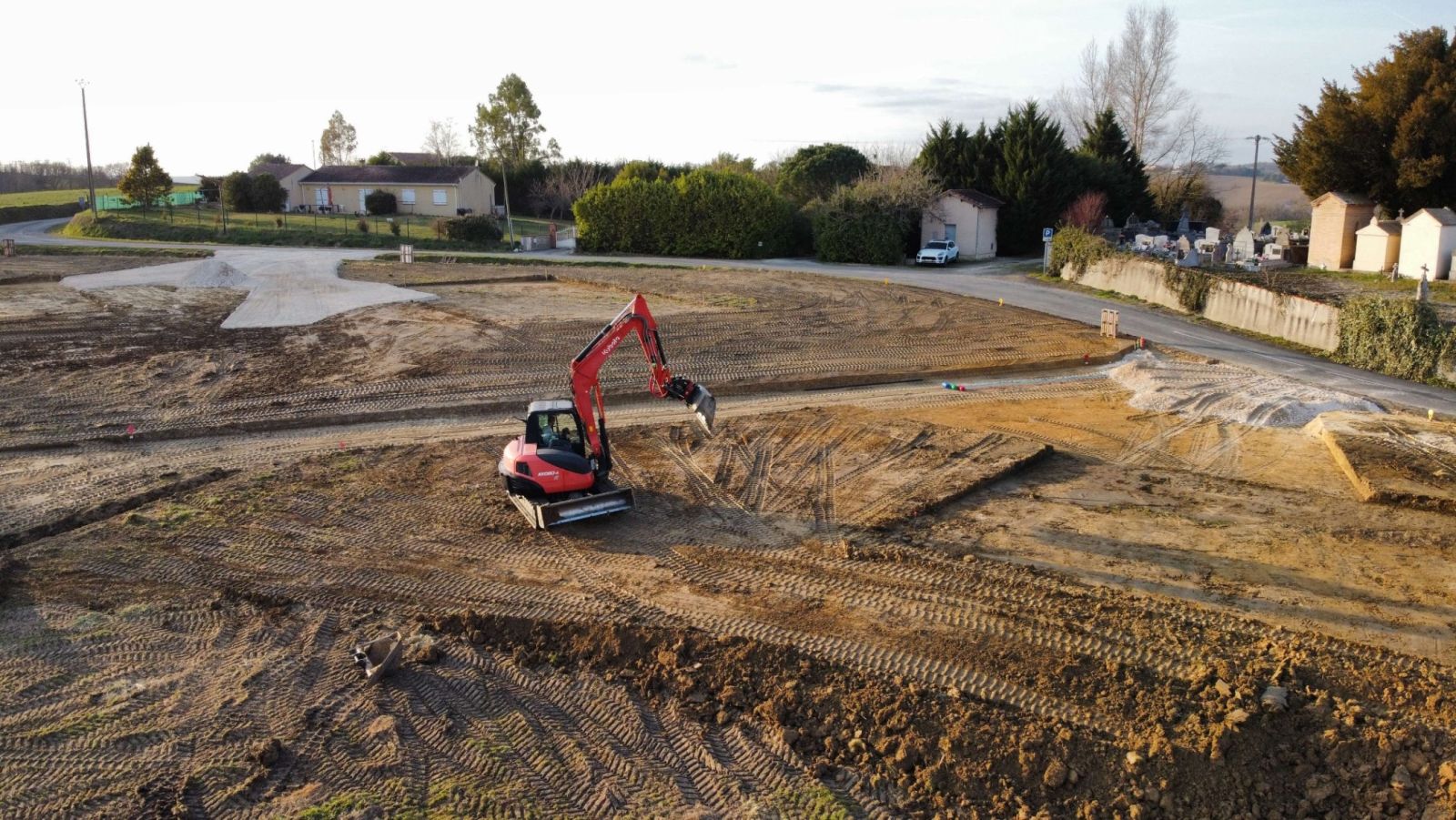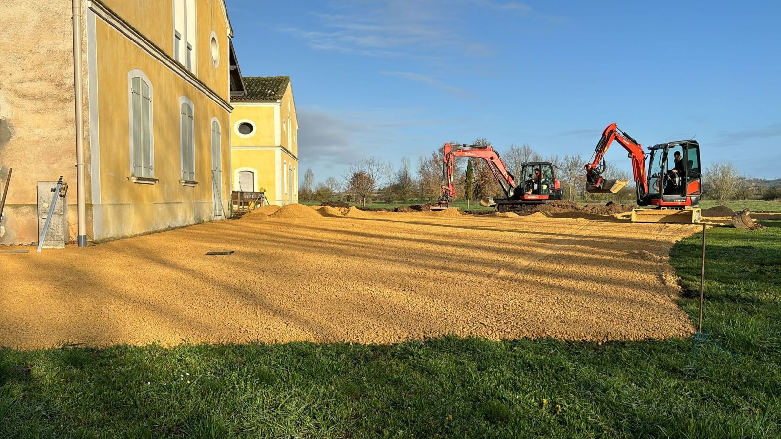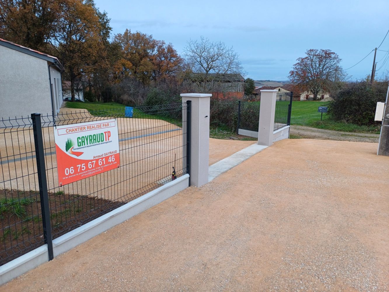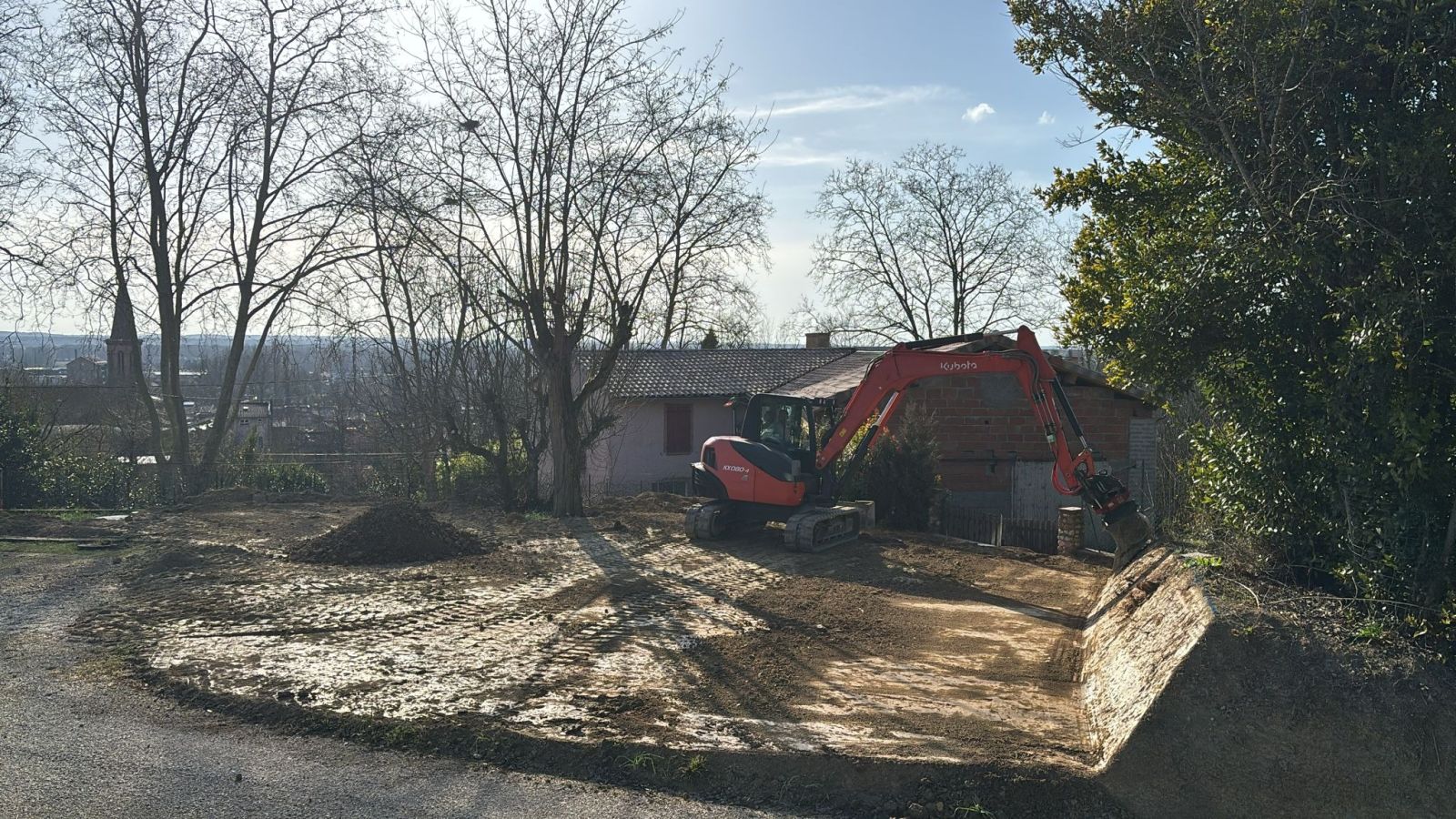 À travers cette galerie, plongez au cœur de l’activité de Gayraud TP, entreprise familiale basée à Villemur-sur-Tarn, spécialisée dans le terrassement, l’assainissement, les travaux de voirie (VRD), la démolition, et l’aménagement extérieur.